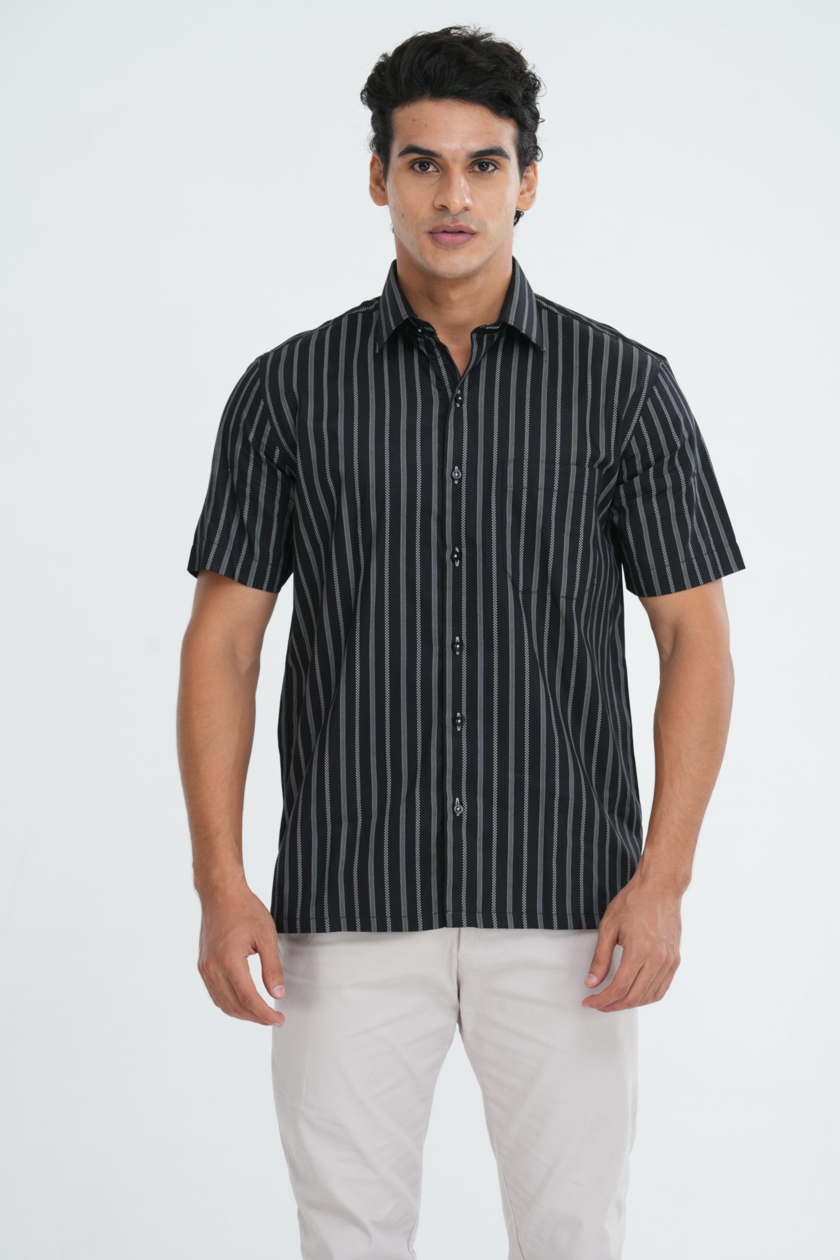 :100% CottonA sophisticated choice for your evening wear ensemble, this Short sleeve, Short Fit shirt features a Classic Straight collar and exclusive striped weave in 100% extra fine cotton fabric.
